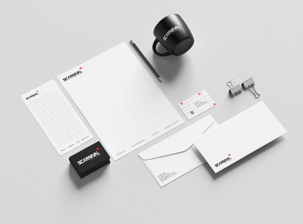 Scarnival’s color palette is rooted in stark contrasts clinical white, deep black, and saturated red. White and black reference medical environments, sterility, and precision, while red introduces the physical reality of the material: skin, blood, and texture. Together, the palette reinforces the tension between control and intensity that defines the brand.